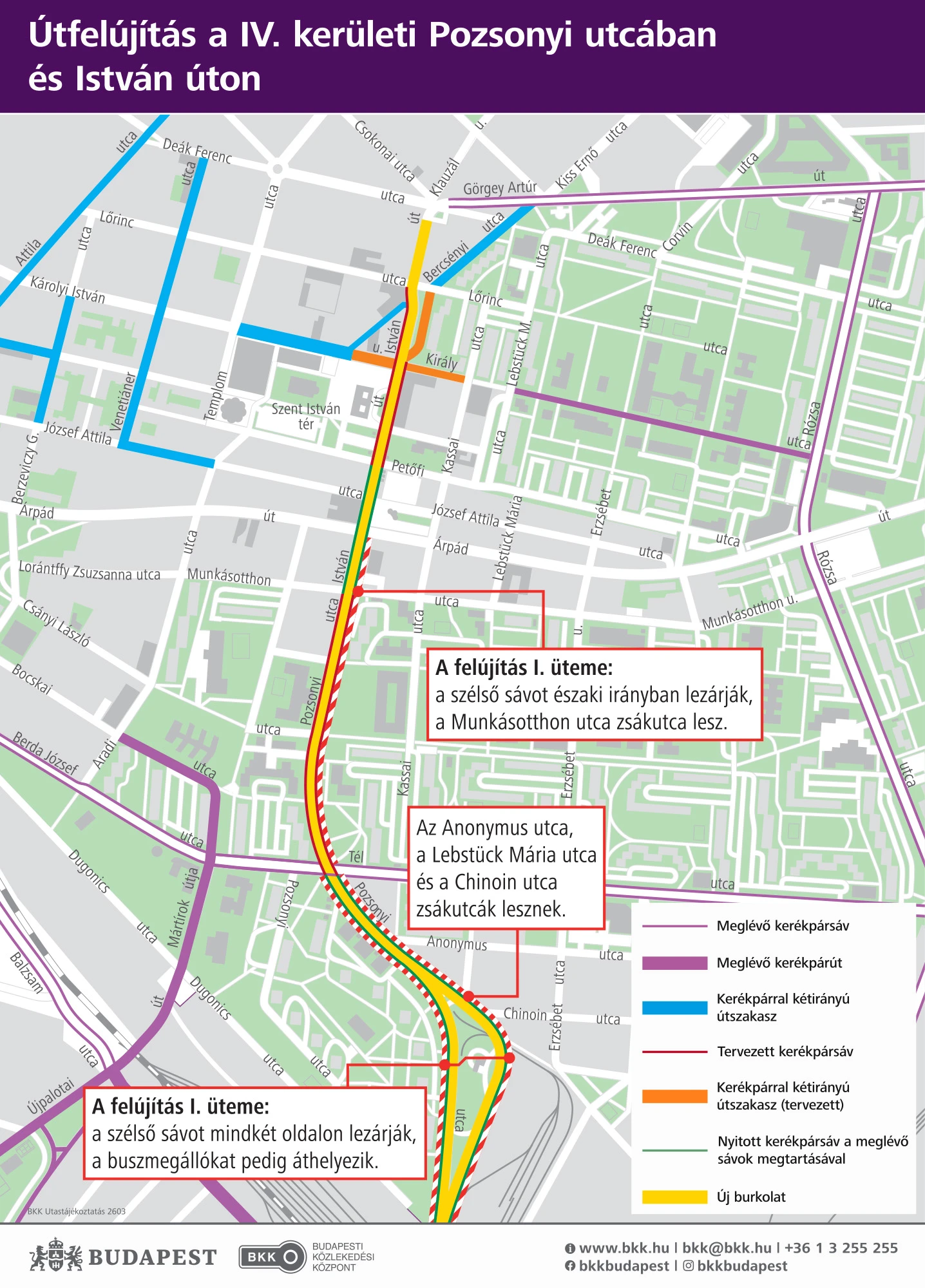 Március 16-án, hétfőn elindul az Újpest közlekedését meghatározó útfelújítás az István úton és a Pozsonyi utcában.